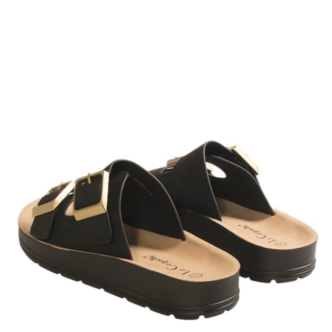 Γυναικείες Παντόφλες La Coquette, κατασκευασμένες από οικολογικό δέρμα, που συνδυάζουν άνεση και μοντέρνο στυλ για τις καθημερινές σας εμφανίσεις. Ένα διαχρονικό σχέδιο που ταιριάζει ιδανικά με καλοκαιρινά και casual σύνολα.