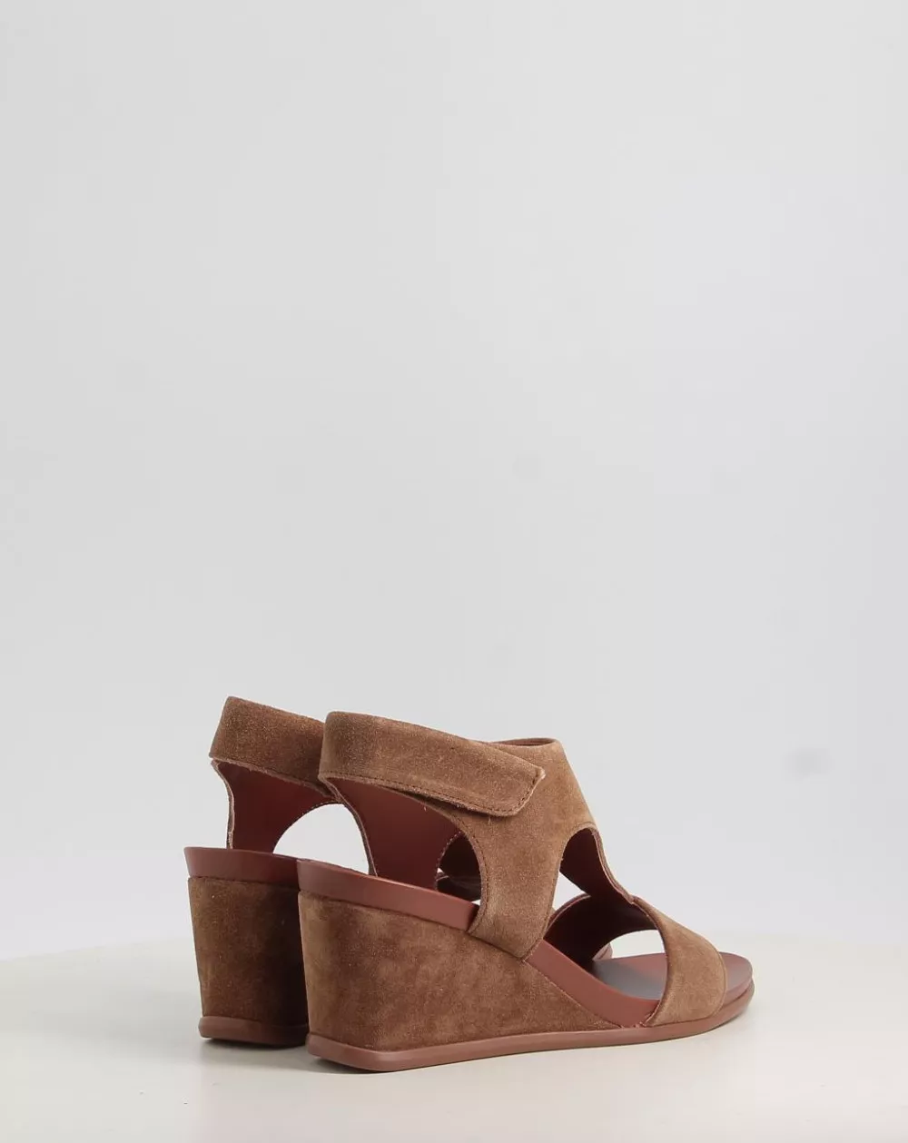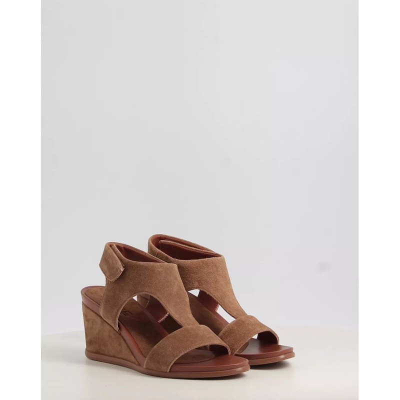 σανδάλια με τα ακόλουθα χαρακτηριστικά: ψηλό τακούνι και κλείσιμο με Velcro.
