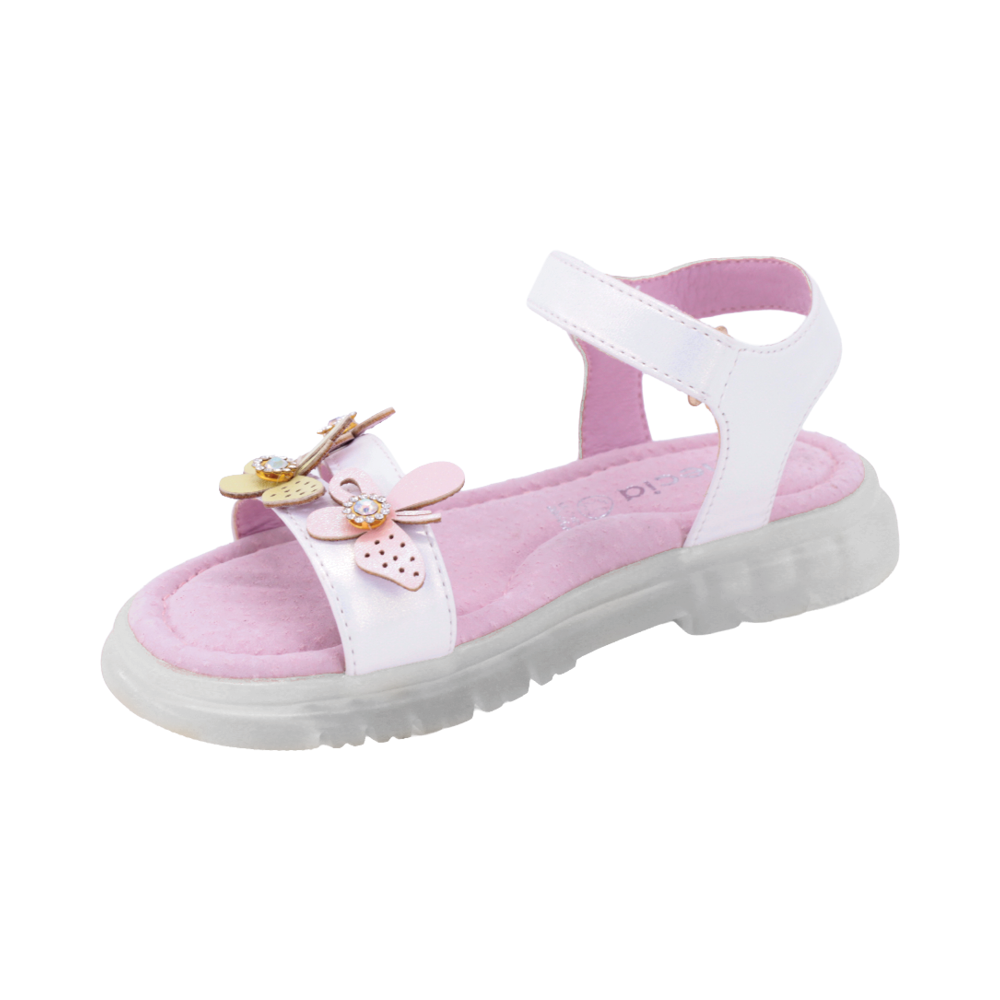 Fenecia πέδιλο με αυτοκόλλητο, δερμάτινο ανατομικό πάτο και λουράκια με πεταλουδίτσες.