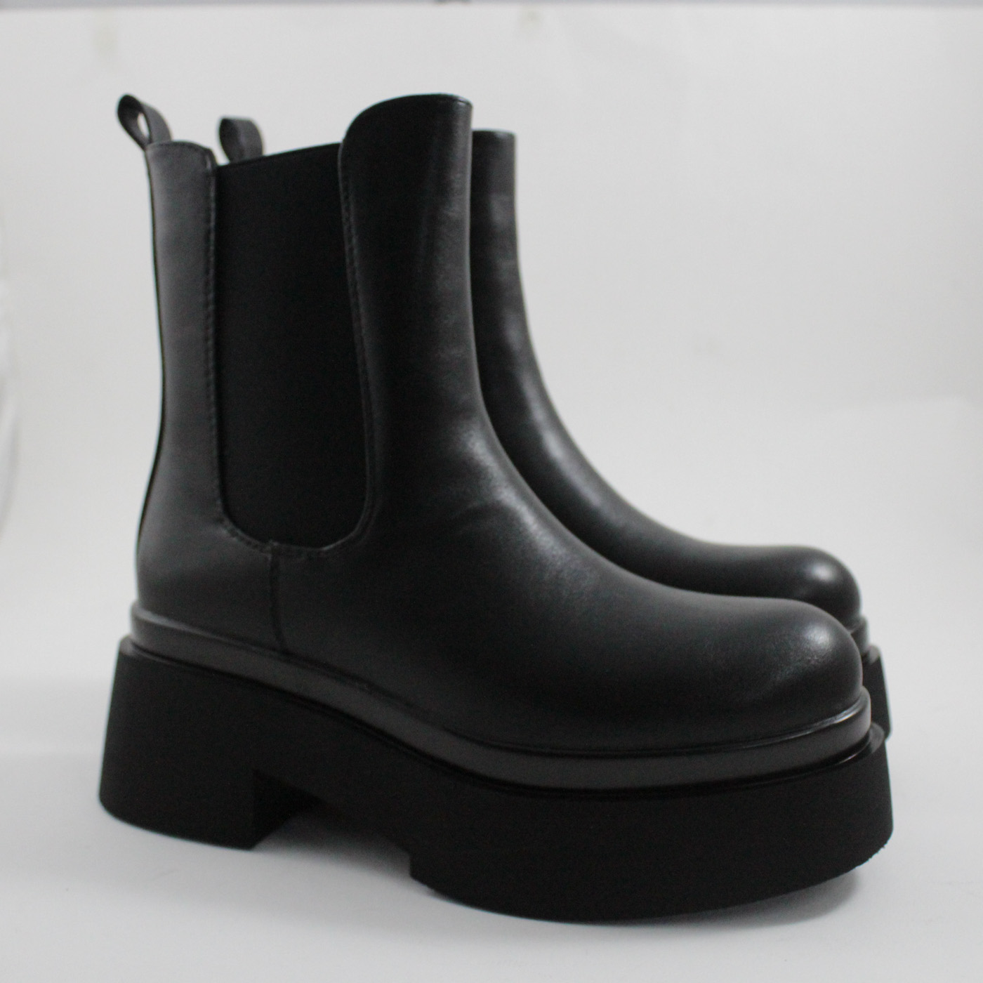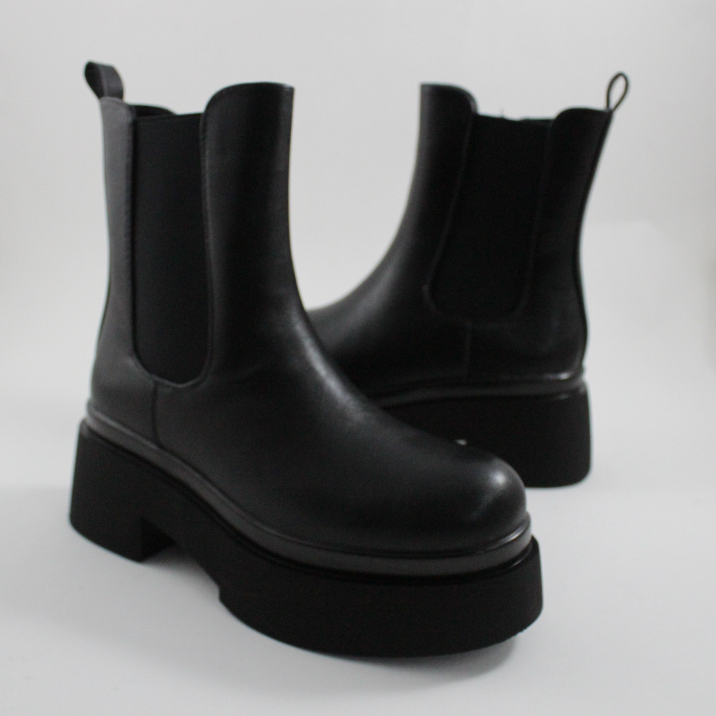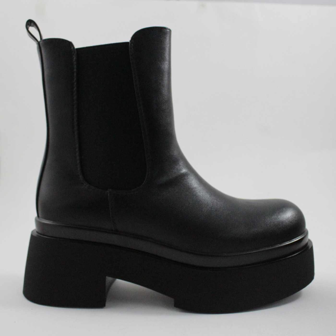 Γυναικεία μποτάκια πλατφόρμας με την χαρακτηριστική σόλα με ράγες από PVC είναι κατασκευασμένα από συνθετικό δέρμα, συνδυάζοντας την ανθεκτικότητα με μια κομψή εμφάνιση. Διαθέτει θηλιά στο πίσω μέρος και φερμουάρ για εύκολη εφαρμογή, εξασφαλίζοντας άνεση και ευκολία. Η σόλα με ράγες προσφέρει εξαιρετικό κράτημα και ενισχύει το δυναμικό στυλ της μπότας. Η συμβουλή μας: Συνδυάστε την μποτάκια με μαύρο στενό τζιν και ένα oversized λευκό πουλόβερ για μια casual αλλά μοντέρνα εμφάνιση. Προσθέστε ένα μακρύ δερμάτινο ή μάλλινο παλτό και μια εντυπωσιακή τσάντα για να ολοκληρώσετε το ντύσιμό σας με στυλ και πολυτέλεια.Σύνθεση: Συνθετικό δέρμα Ύψος τακουνιού: 5 εκ. Εφαρμογή: Κανονική
