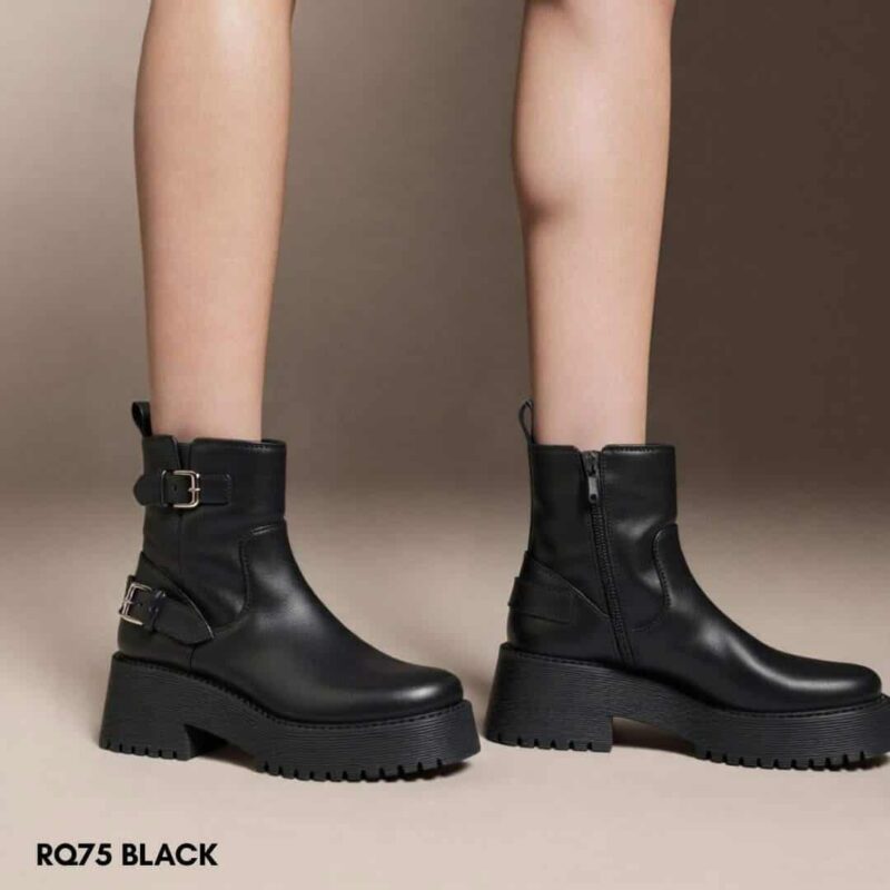 Γυναικεία μποτάκια πλατφόρμας με την χαρακτηριστική σόλα με ράγες από PVC είναι κατασκευασμένα από συνθετικό δέρμα, συνδυάζοντας την ανθεκτικότητα με μια κομψή εμφάνιση. Διαθέτει θηλιά στο πίσω μέρος και φερμουάρ για εύκολη εφαρμογή, εξασφαλίζοντας άνεση και ευκολία. Η σόλα με ράγες προσφέρει εξαιρετικό κράτημα και ενισχύει το δυναμικό στυλ της μπότας. Η συμβουλή μας: Συνδυάστε την μποτάκια με μαύρο στενό τζιν και ένα oversized λευκό πουλόβερ για μια casual αλλά μοντέρνα εμφάνιση. Προσθέστε ένα μακρύ δερμάτινο ή μάλλινο παλτό και μια εντυπωσιακή τσάντα για να ολοκληρώσετε το ντύσιμό σας με στυλ και πολυτέλεια.Σύνθεση: Συνθετικό δέρμα Ύψος τακουνιού:6 εκ. Εφαρμογή: Κανονική