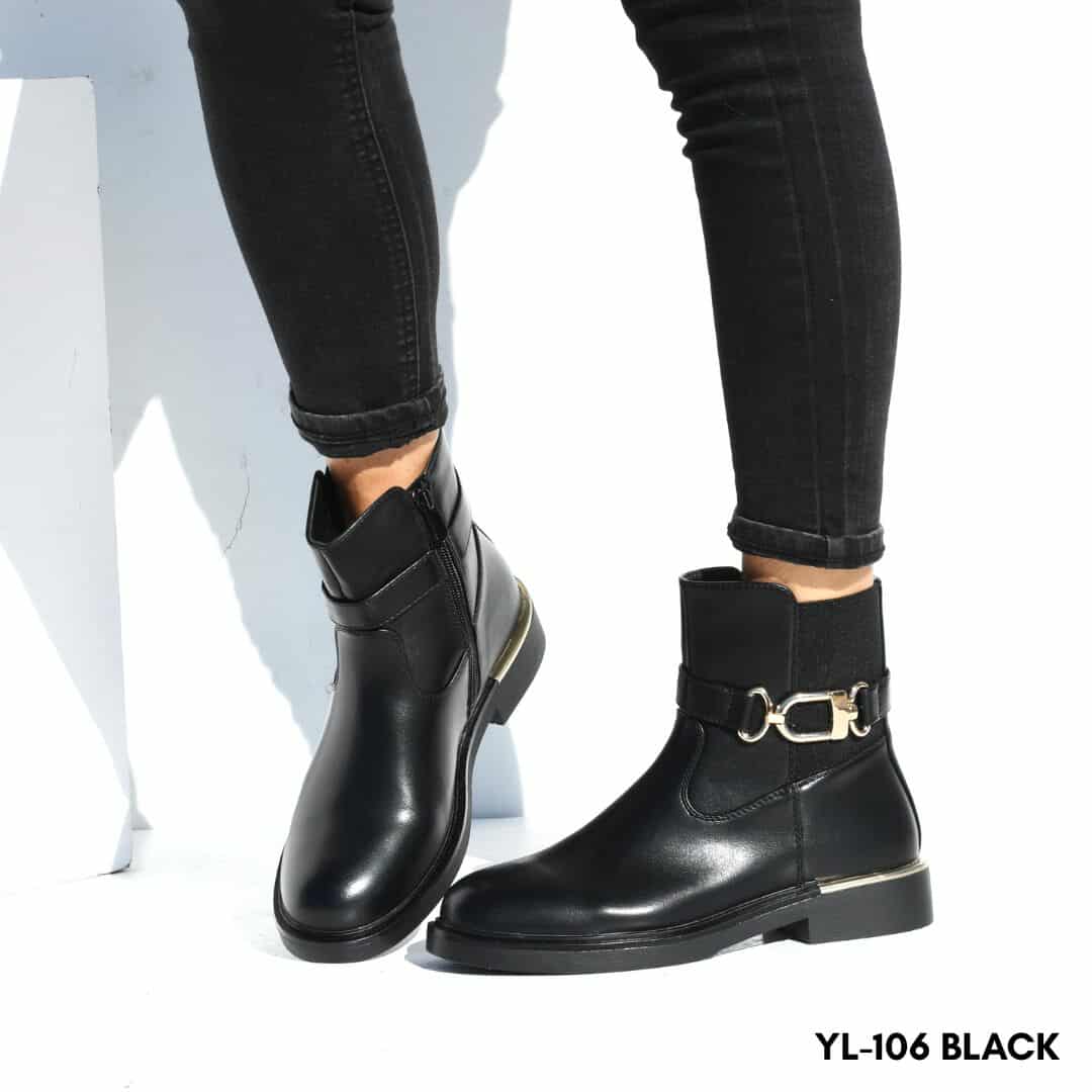 Γυναικεία μποτάκια chelsea flat. Διαθέτει φερμουάρ για εύκολη εφαρμογή και χρυσή διακοσμητική λεπτομέρεια στο πλάι ! Η συμβουλή μας: Συνδυάστε την μποτάκια με μαύρο στενό τζιν και ένα oversized λευκό πουλόβερ για μια casual αλλά μοντέρνα εμφάνιση. Προσθέστε ένα μακρύ δερμάτινο ή μάλλινο παλτό και μια εντυπωσιακή τσάντα για να ολοκληρώσετε το ντύσιμό σας με στυλ και πολυτέλεια. Σύνθεση: Συνθετικό δέρμα Εφαρμογή: Κανονική