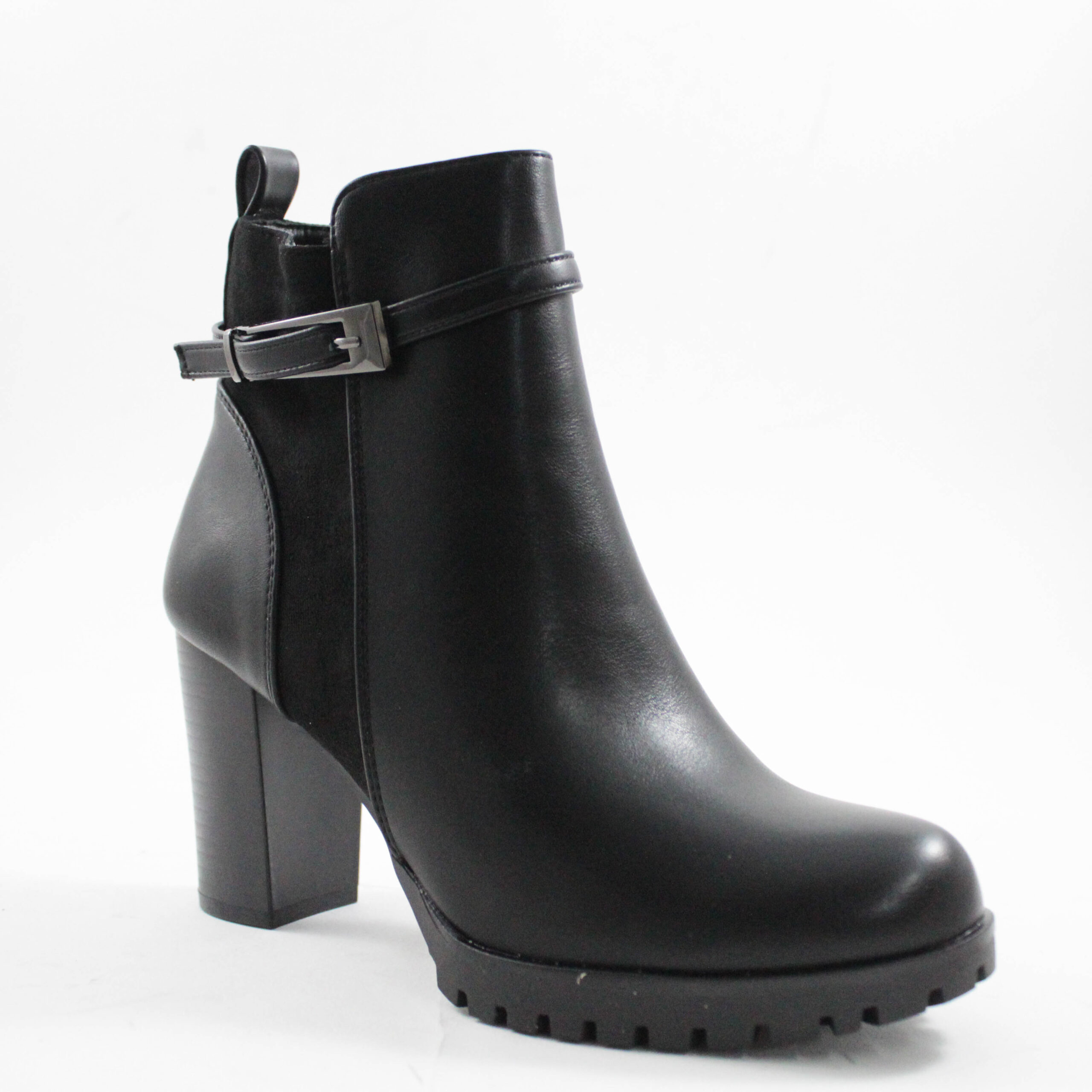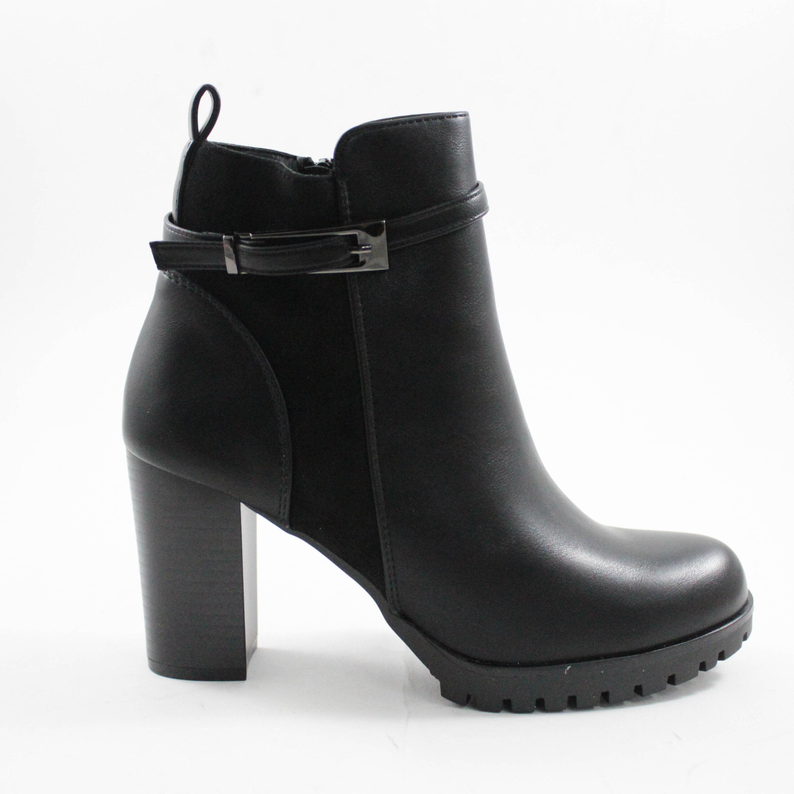 • Μποτάκια μέχρι τον αστράγαλο από δέρμα υψηλής ποιότητας . Κλείνουν με φερμουάρ στο πλάι . Το τακούνι είναι χοντρό και έχει ύψος 8 cm.