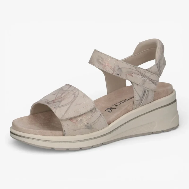 Δροσερά, κολακευτικά και φτιαγμένα για όλη μέρα, αυτά τα μπεζ σανδάλια Caprice με πολλές πλατφόρμες είναι ένα εξαιρετικό καλοκαιρινό κομμάτι. Τα απαλά δερμάτινα λουράκια διαθέτουν ένα διακριτικό πολυτονικό τύπωμα που προσθέτει ενδιαφέρον, ενώ παράλληλα παραμένουν εύκολα στο styling. Δύο λουράκια velcro σάς επιτρέπουν να ρυθμίζετε γρήγορα την εφαρμογή (ιδανικό αν τα πόδια σας πρήζονται σε ζεστό καιρό), και η πλατφόρμα 60 mm σας δίνει ύψος χωρίς την αίσθηση του τακουνιού. Κάτω από το πέλμα, η αντικραδασμική προστασία Caprice Memotion διατηρεί τα βήματα άνετα — και το πέλμα είναι αφαιρούμενο και πλενόμενο , ώστε να μπορείτε να διατηρείτε τα πράγματα φρέσκα.