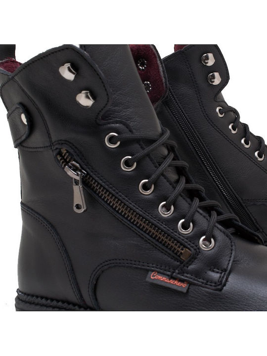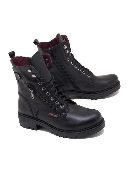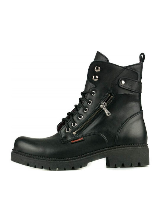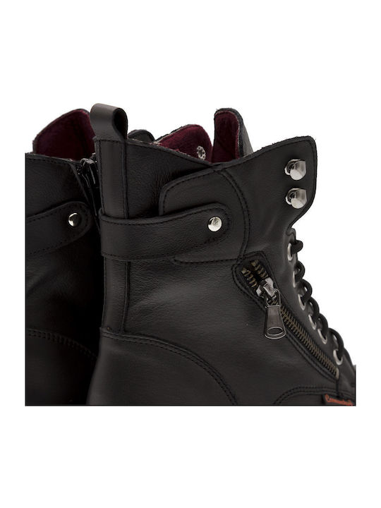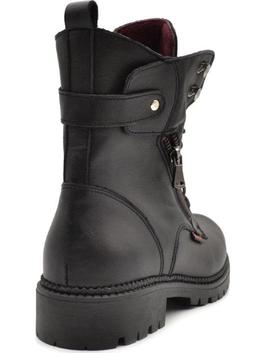 Δερμάτινα μποτάκια σε biker στυλ με στρογγυλεμένη άκρη, διακοσμητικά φερμουάρ και μοντέρνο φινίρισμα για τολμηρές εμφανίσεις.