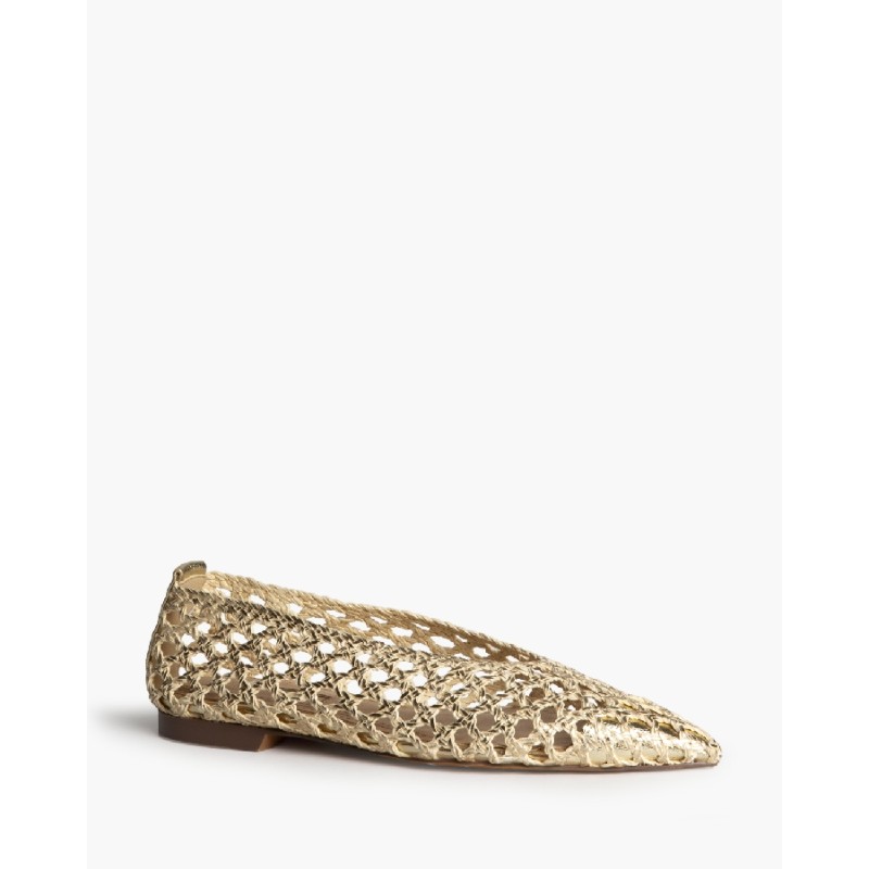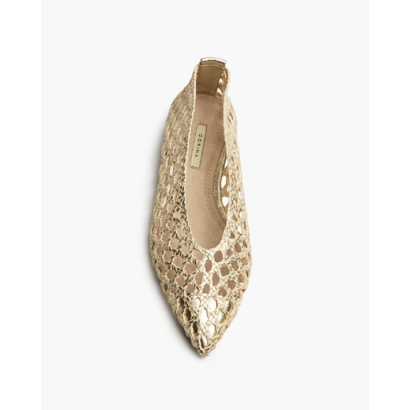 Φλατ μπαλαρίνα. Πλεκτό άνω μέρος. Μυτερή μύτη. Στρογγυλή λαιμόκοψη.