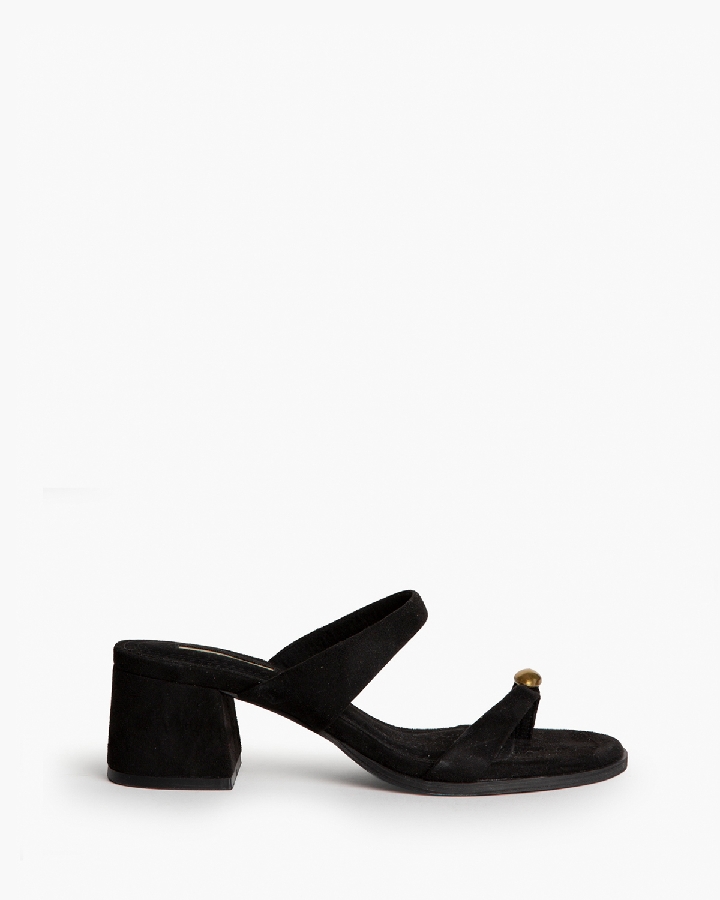 Σανδάλι με χαμηλό τακούνι. Λεπτομέρεια κρίκος στο μεγάλο δάχτυλο. Φαρδύ τακούνι με στρογγυλεμένη μύτη.