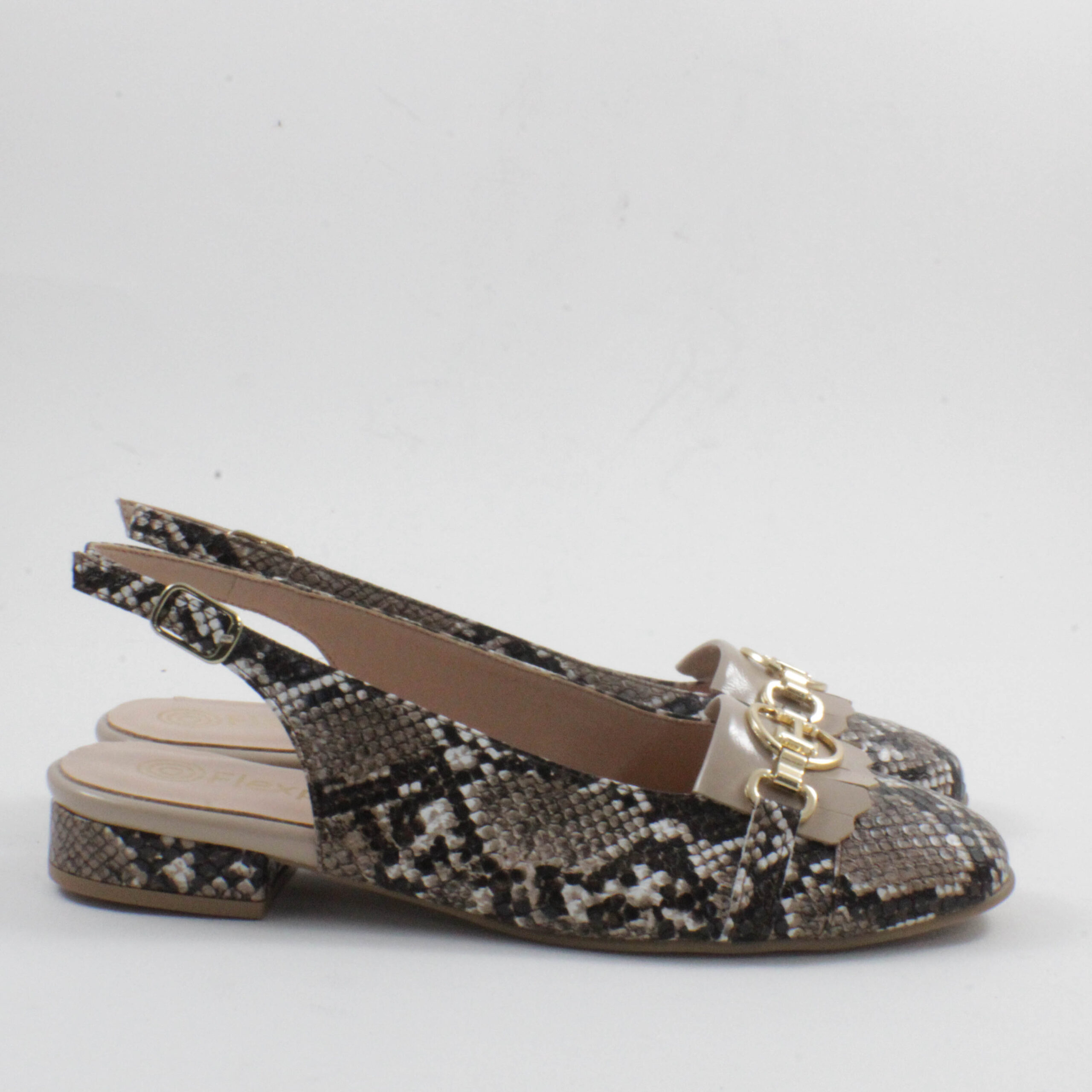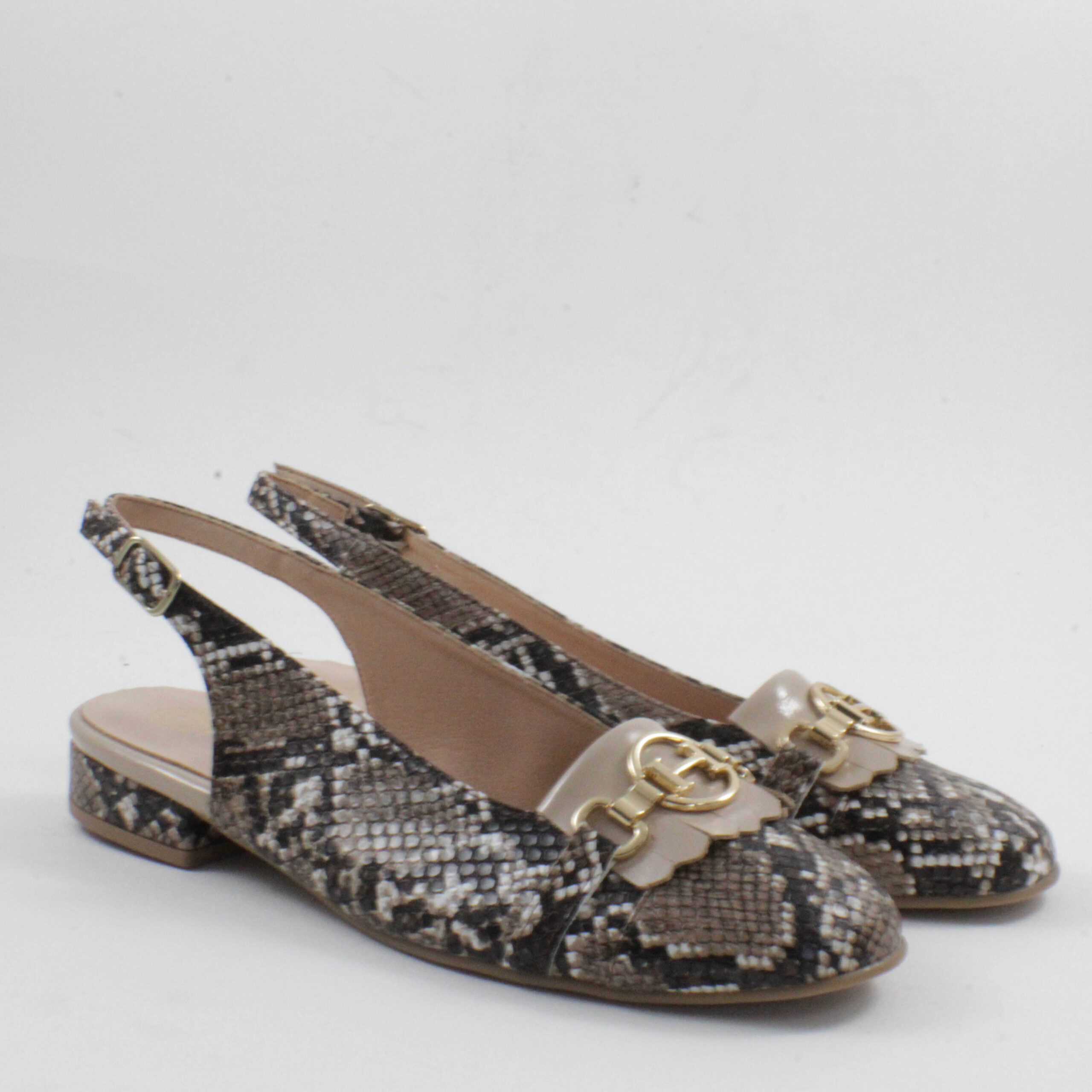 Γυναικεία δερμάτινα παπούτσια 672 σε καφέ φίδι χρώμα. Χειροποίητα και κομψά, είναι σχεδιασμένα από δέρμα εξαιρετικής ποιότητας στο πάνω μέρος και από γνήσιο δέρμα εσωτερικά. Προσφέρουν αίσθηση ελαφρότητας, άνεσης και σταθερότητας σε κάθε βήμα.