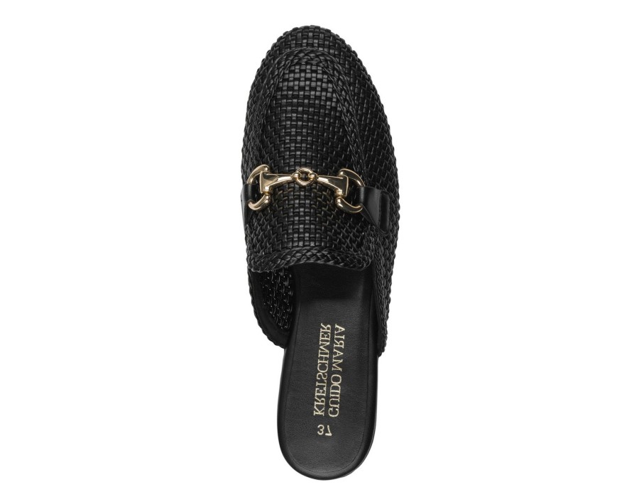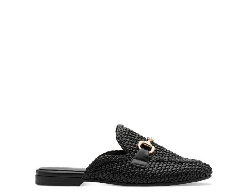 Γυναικεία mules της μάρκας Marco Tozii σε μαύρο χρώμα με χρυσή αγκράφα. Κατασκευασμένα από συνθετικό δέρμα. Άνετα και ευκολοφόρετα για όλη την ημέρα.
