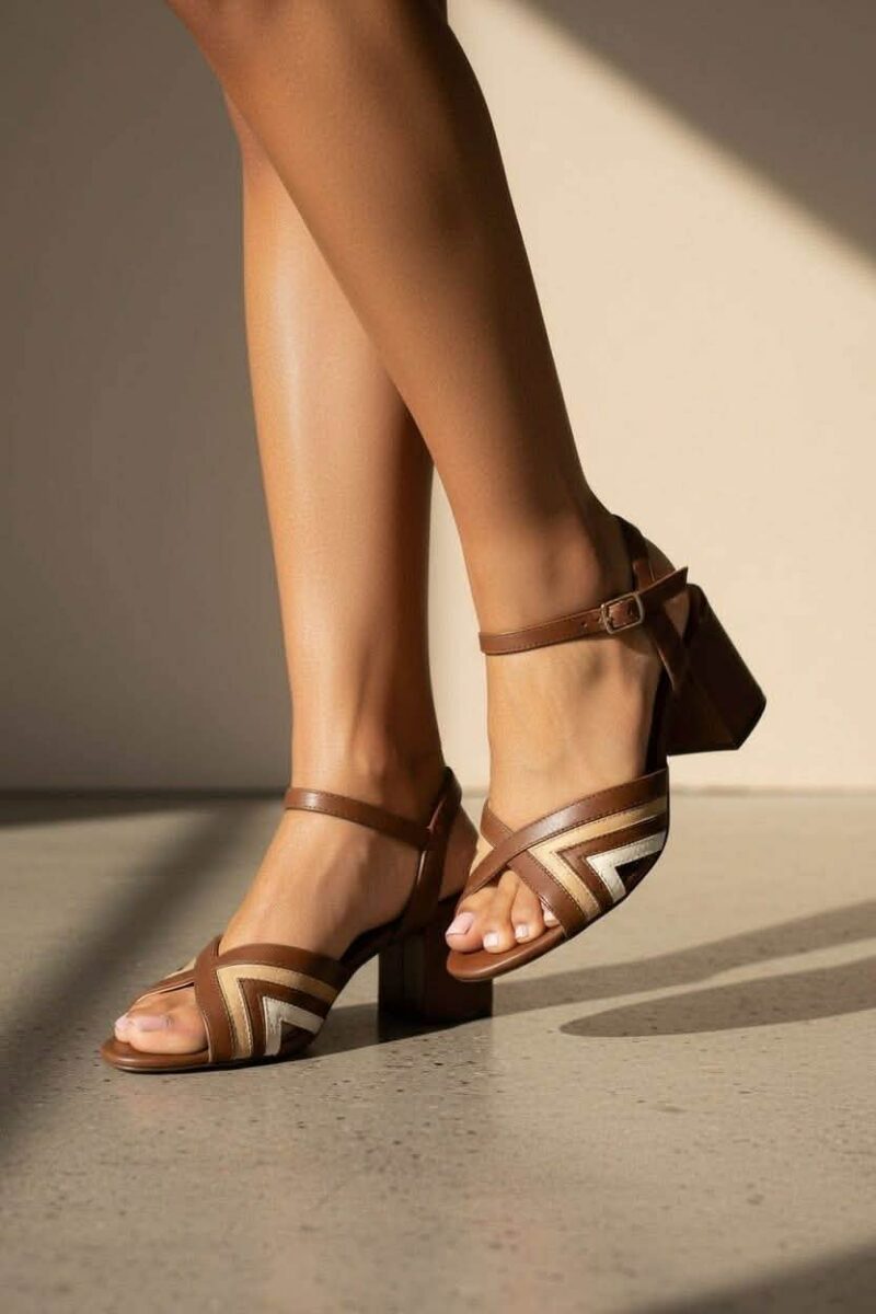 Ψηλοτάκουνα πέδιλα cl086 camel