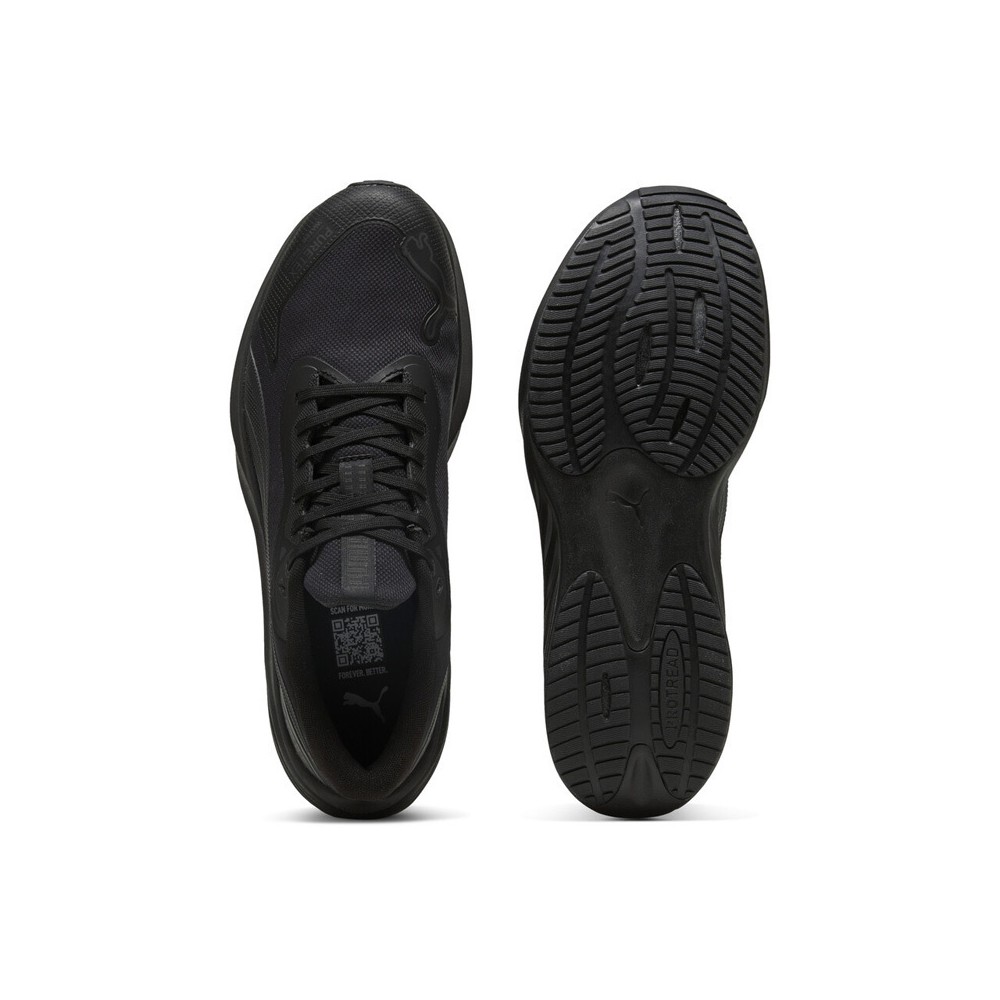 Η ενισχυμένη μύτη προσφέρει αντοχή στην τριβή και προστασία από χτυπήματα, ενώ τα ανακλαστικά στοιχεία στη φτέρνα ενισχύουν την ορατότητα στο σκοτάδι. Η ενδιάμεση σόλα από PumaLite foam – ελαφρύς αφρός που περιέχει ανακυκλωμένο EVA – εξασφαλίζει άνεση όλη μέρα. Η εξωτερική σόλα από καουτσούκ Protread παρέχει σταθερότητα και αξιόπιστη πρόσφυση σε διάφορες επιφάνειες, από την πόλη μέχρι την ύπαιθρο.