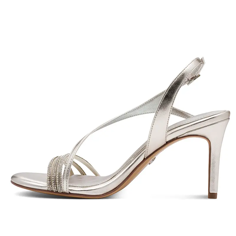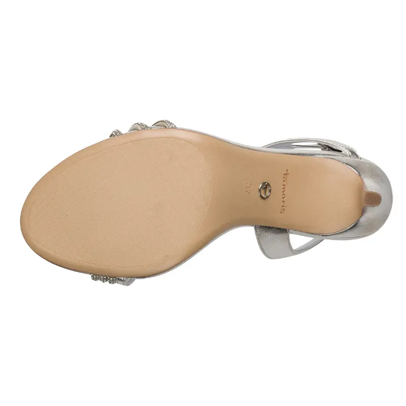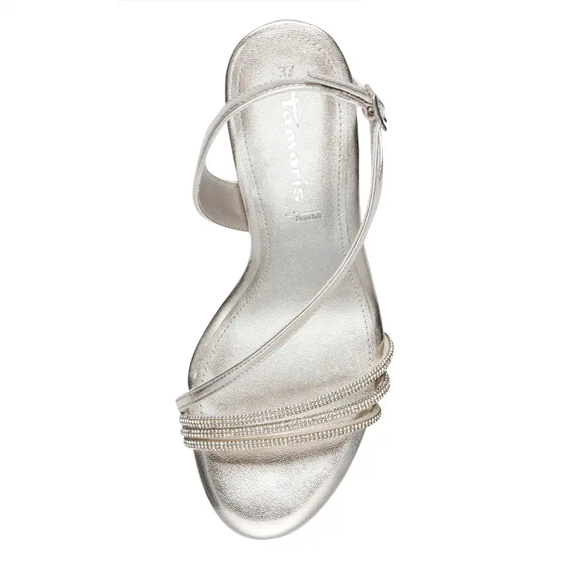 Γυναικείο πέδιλο σε ασημί χρώμα, της επώνυμης εταιρείας Tamaris.