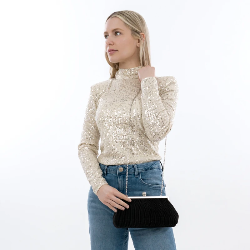 Γυναικεία τσάντα με κλιπ σε μαύρο χρώμα, της επώνυμης εταιρείας Tamaris.