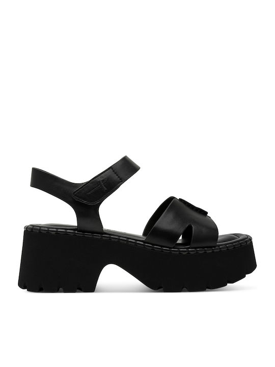 Tamaris 1-28377-46-003 Γυναικεία Πέδιλα από Δέρμα σε Μαύρο χρώμα