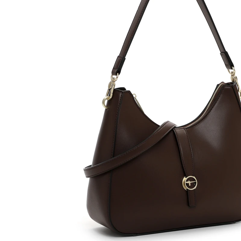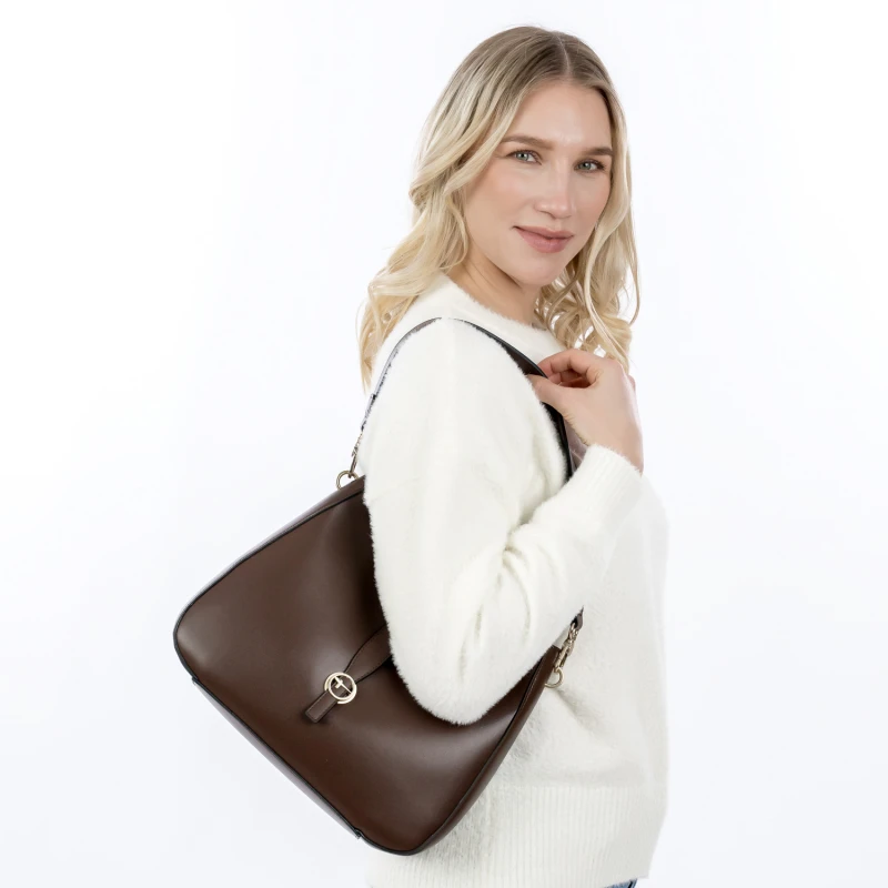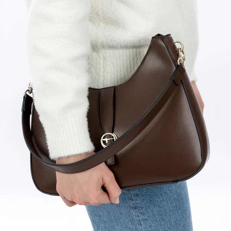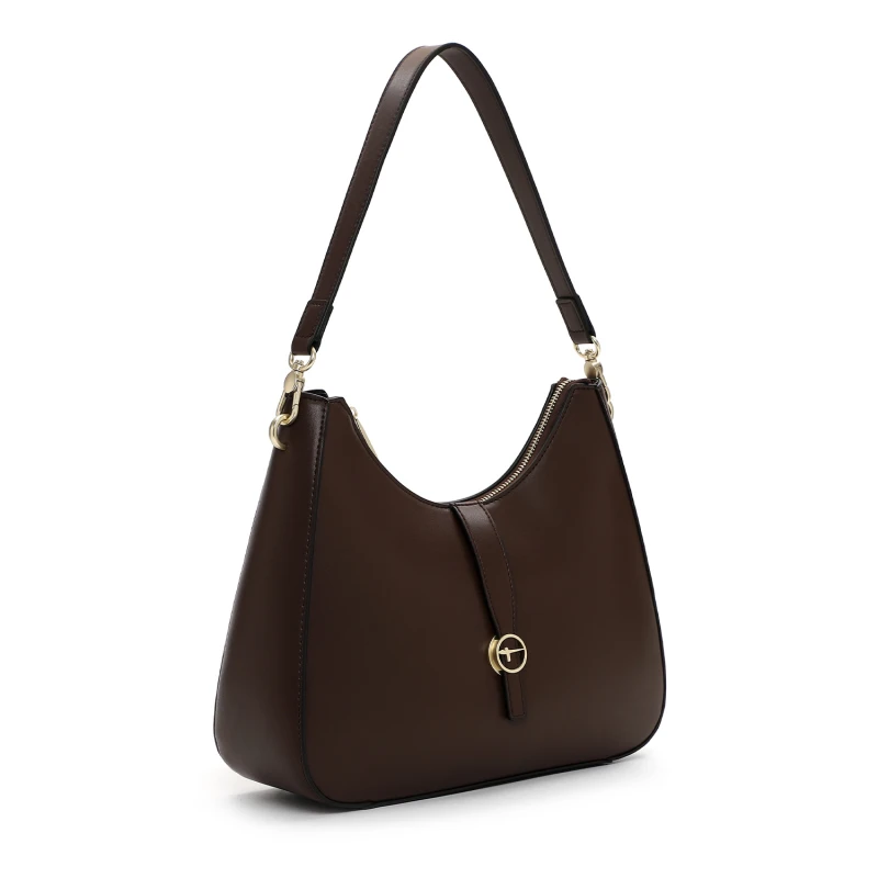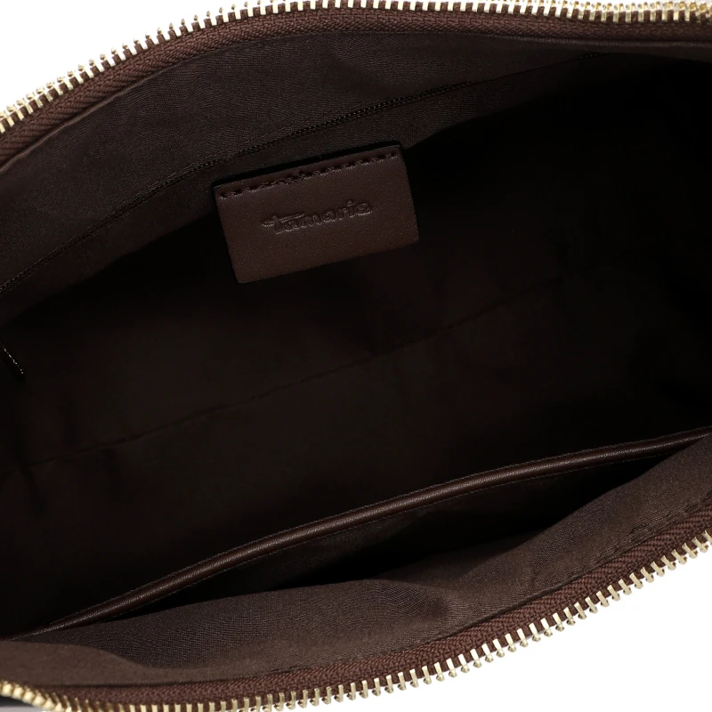 Γυναικεία τσάντα ώμου σε καφέ χρώμα, της επώνυμης εταιρείας Tamaris.
