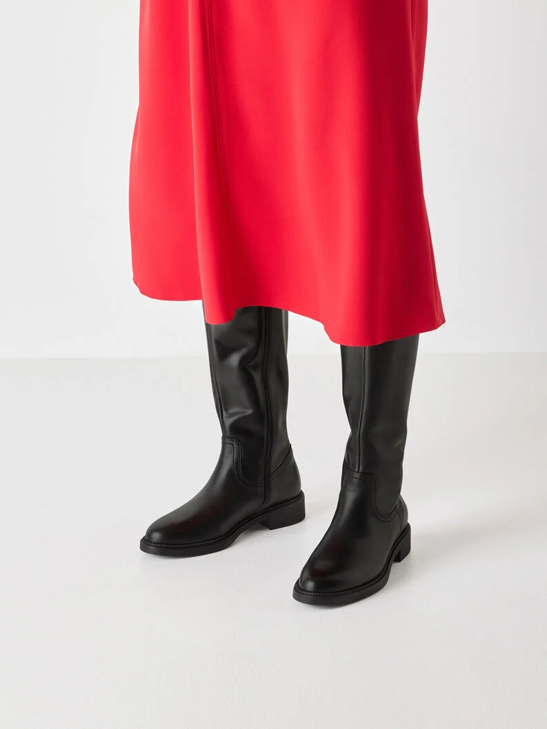 Ανακάλυψε πώς οι μακριές μπότες Tamaris μπορούν να δώσουν στον κάθε σου βήμα σιγουριά και ξεχωριστό στυλ. Ο μαλακός πάτος Touchit αγκαλιάζει τέλεια το πέλμα σου, ενώ το σταθερό χαμηλό τακούνι 3,5 εκ. προσφέρει άνεση όλη μέρα. Λείο δέρμα, κομψή αγκράφα και διαχρονικός vintage χαρακτήρας συνδυάζονται για να συνοδεύουν μοναδικά τις στιγμές σου — στη δουλειά, στη βόλτα, στη βραδινή έξοδο.