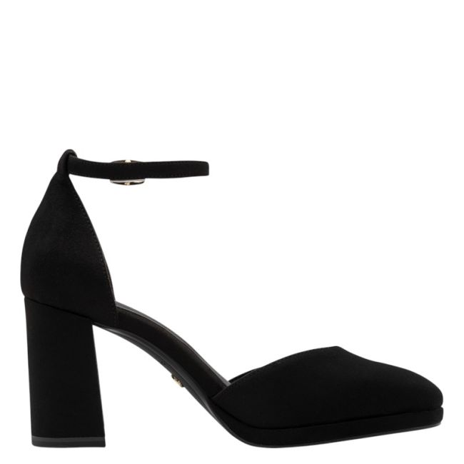 Γυναικεία γόβες Tamaris, VEGAN, σε μαύρο χρώμα, από συνθετικό σουέντ εξαιρετικής ποιότητας. Χοντρό σταθερό τακούνι ύψους 8 cm και μαλακό πέλμα τεχνολογίας TOUCH IT, της εταιρείας TAMARIS για ακόμα πιο άνετη αίσθηση. Το μαλακό πέλμα προσαρμόζεται συνεχώς στο εκάστοτε σχήμα ποδιού βάσει του σωματικού βάρους και έτσι προσφέρει πάντα τέλεια άνεση. Επίσης διαθέτουν την τεχνολογία ANTISHOKK η οποία απορροφά τους κραδασμούς και την τεχνολογία ANTISLIDE για την αποφυγή ολίσθησης. Ιδανική επιλογή εάν θες να συνδυάσεις στυλ και άνεση φορώντας μια γόβα.