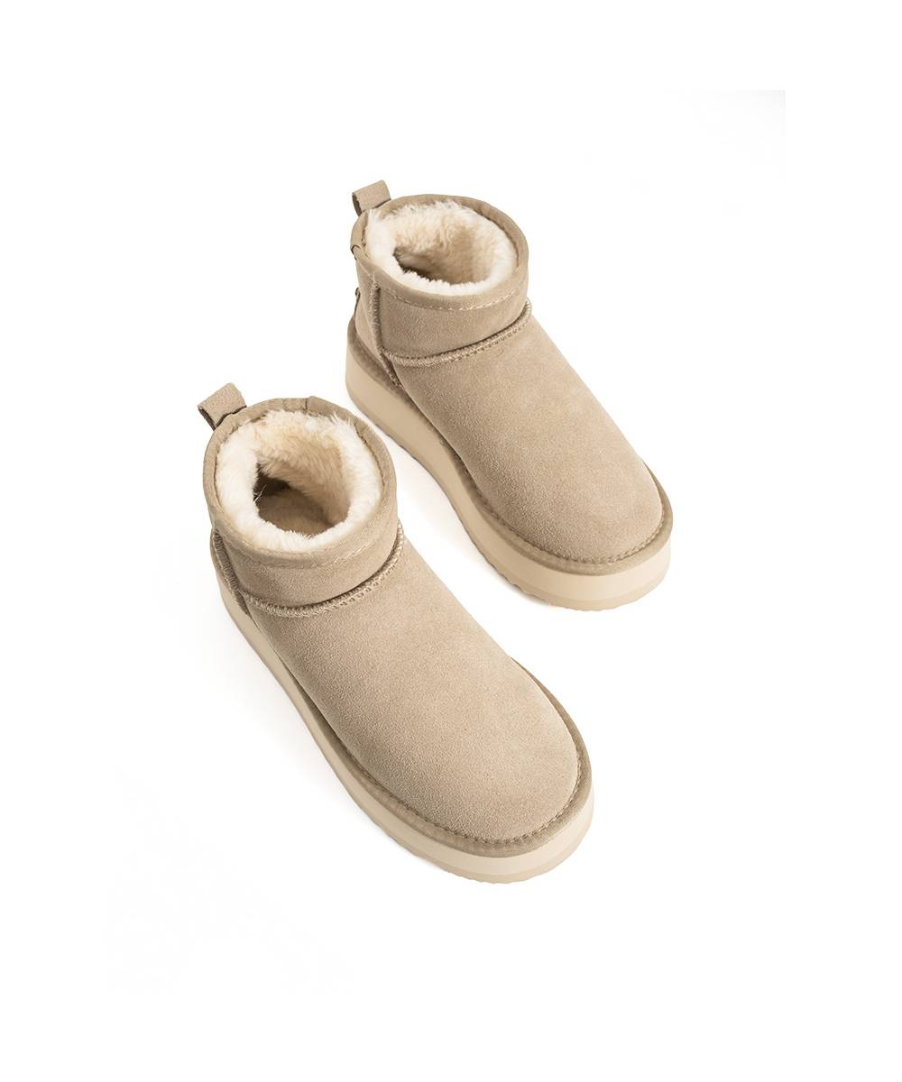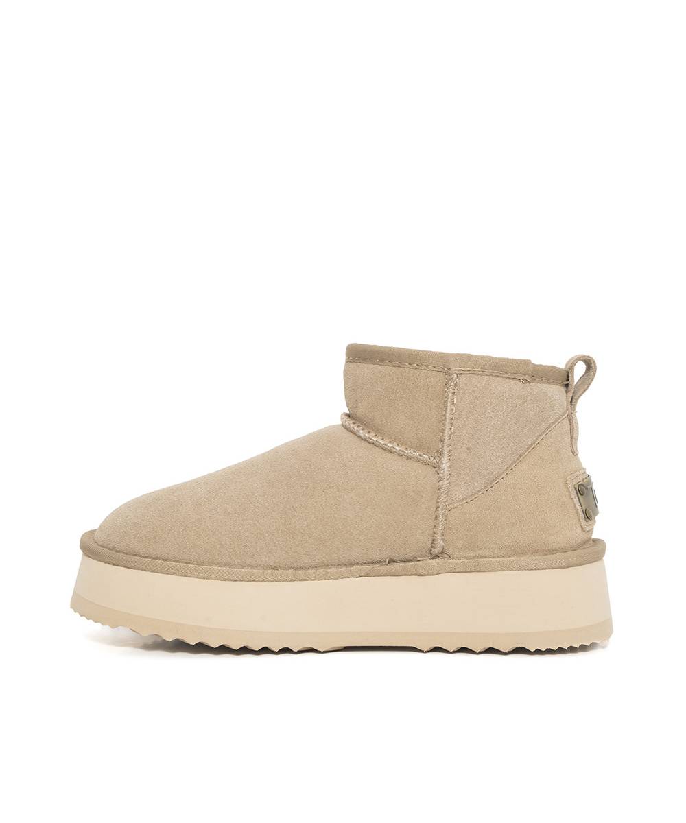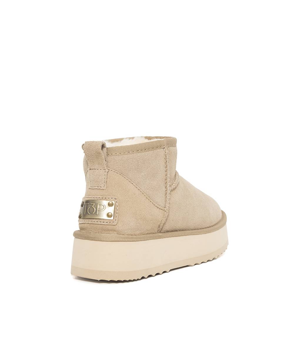Γυναικεία μποτάκια TOP3 MELIDE. Κατασκευασμένα από γνήσιο δέρμα καστόρι και οικολογική γούνα εσωτερικά . Αντιολισθητική σόλα ύψους 4,5 εκ. Χρώμα μπεζ.