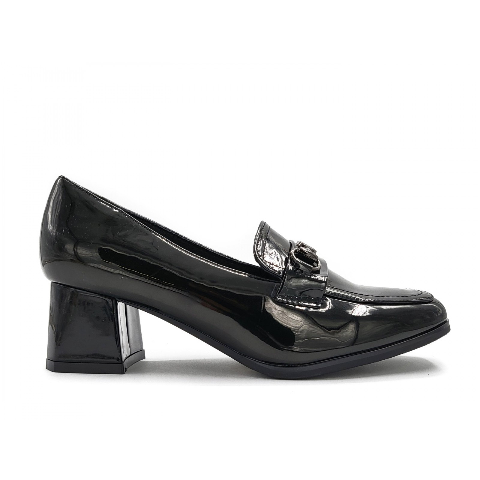 Γυναικείες Γόβες Plato, κατασκευασμένες από οικολογικό λουστρίνι. Μια επιλογή με χρυσή αγκράφα στο μπροστινό μέρος, που θα αναβαθμίσει τις εμφανίσεις σας! Διαθέτουν μαλακό πάτο, και αντιολισθητική σόλα για σταθερά και άνετα βήματα. Ύψος τακουνιού: 5cm.
