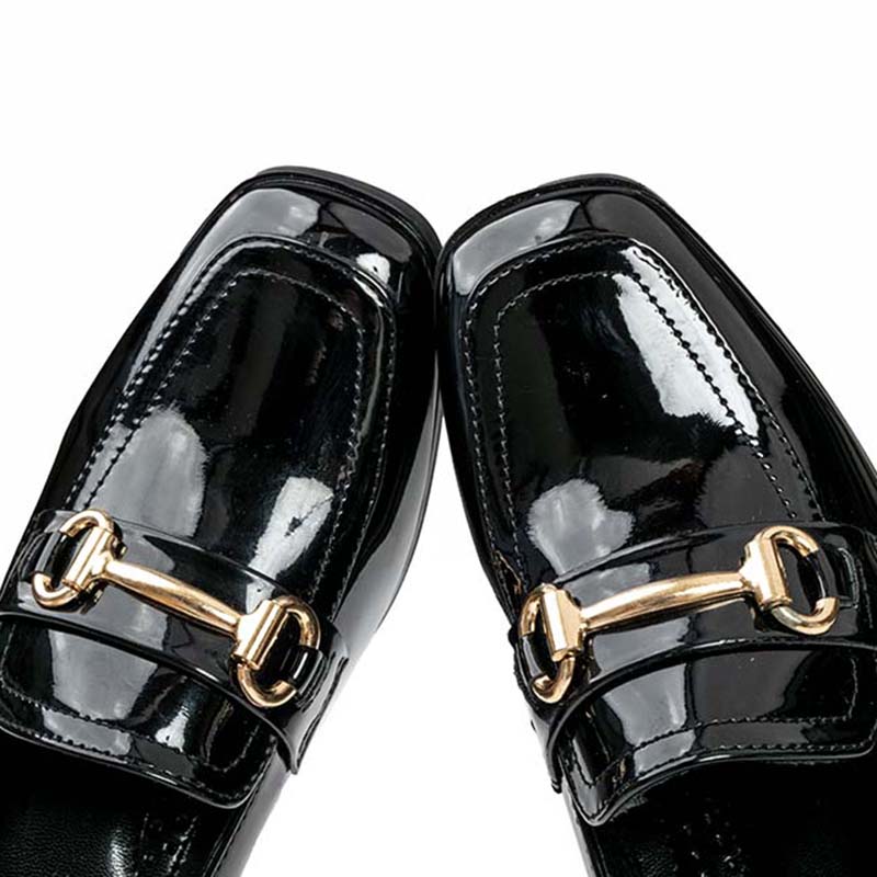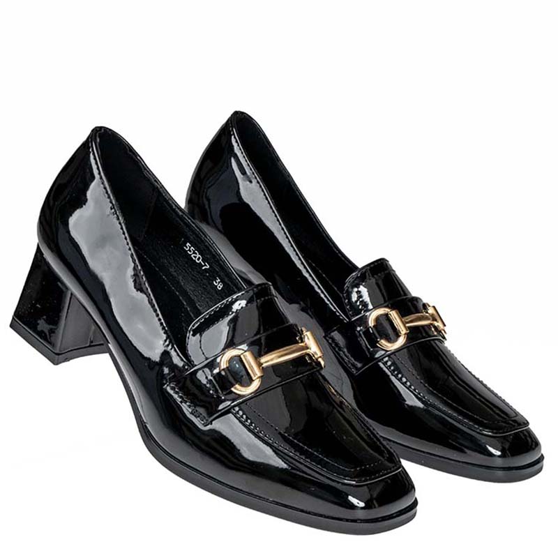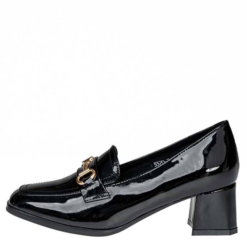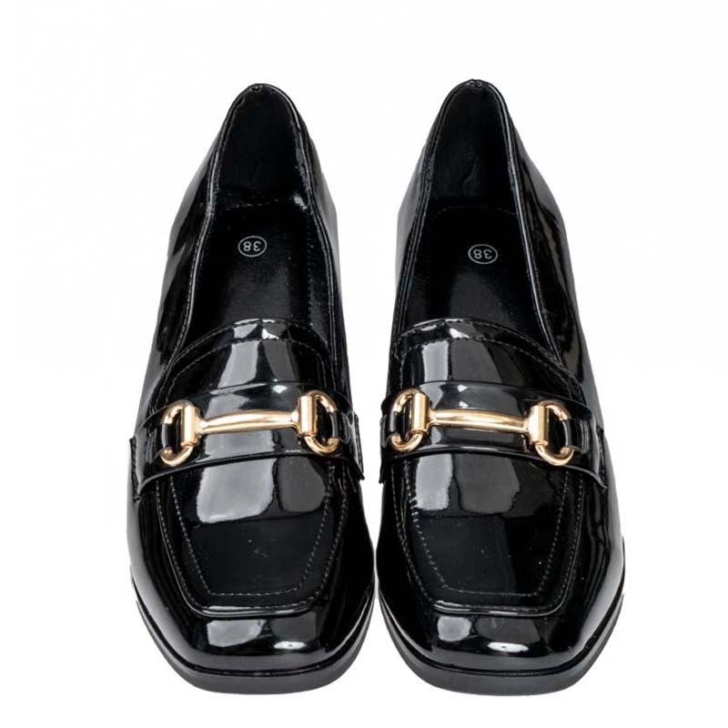 Γυναικείες Γόβες Plato, κατασκευασμένες από οικολογικό λουστρίνι. Μια επιλογή με χρυσή αγκράφα στο μπροστινό μέρος, που θα αναβαθμίσει τις εμφανίσεις σας! Διαθέτουν μαλακό πάτο, και αντιολισθητική σόλα για σταθερά και άνετα βήματα. Ύψος τακουνιού: 5cm.